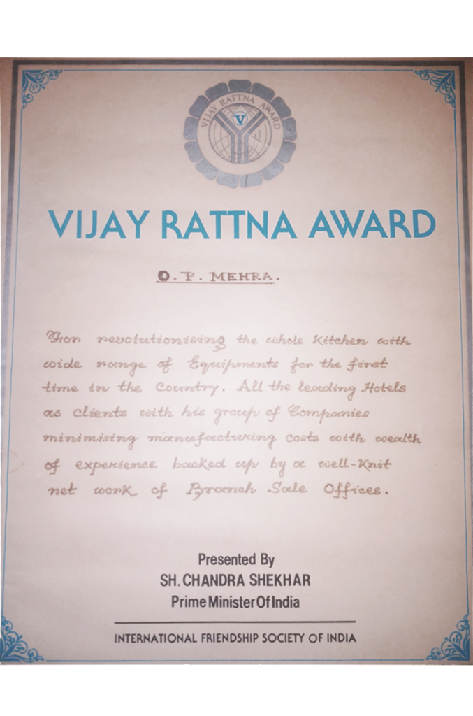 We are proud to be awarded the “Vijay Ratna” for being pioneers in the Industry, and recently we have been awarded as the “Kitchen Equipment Manufacturer of the Century” by FHSAI